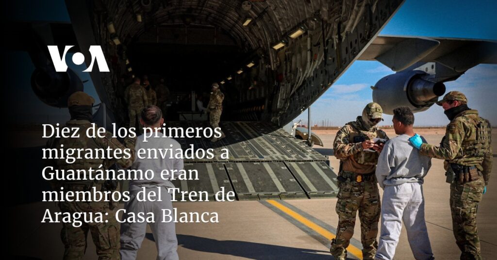 El primer vuelo militar estadounidense que llegó a la Bahía de Guantánamo, en Cuba, con migrantes irregulares acusados de crímenes, tenía a bordo 10 miembros de la banda criminal Tren de Aragua, dijo el miércoles Karoline Leavitt, secretaria de prensa de la Casa Blanca.