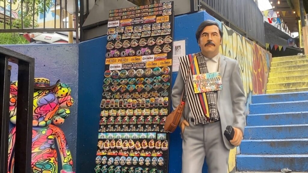“De Escobar solo tenemos ruanas (prenda de abrigo), pero no es que se vendan demasiado porque no tenemos muchas cosas alusivas a Pablo Escobar. Las tenemos para estar en el negocio, pero las compran más los visitantes extranjeros, porque tienen esa idea de que Pablo Escobar es Medellín”, dijo a la VOA Ana María Jaramillo, una vendedora de la Comuna 13 de Medellín.