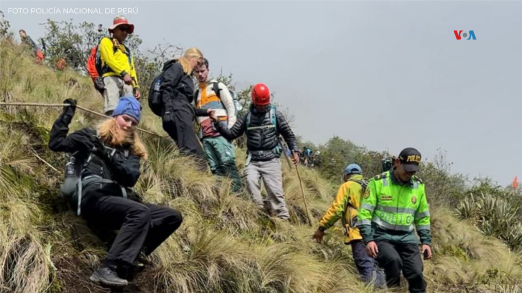 Unos 23 turistas de diferentes nacionalidades fueron rescatados por la Policía Nacional de Perú, luego de que quedaran varados en un camino en la ruta de la conocida Laguna Humantay.